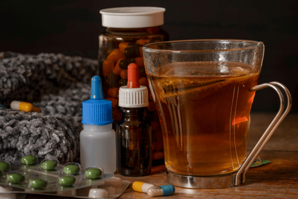 Bei einer Erkältung bekämpft das körpereigene Abwehrsystem die Erreger. Durch ausreichend Flüssigkeitszufuhr und körperliche Schonung kann man das Immunsystem unterstützen. Medikamente können nichts gegen die Erkältungsviren ausrichten, sie können lediglich die Symptome abschwächen. Das gilt auch für Antibiotika, die nur bei Bakterien wirken, nicht aber bei Erkältungsviren. Es gibt also kein Mittel, um den Krankheitsverlauf abzukürzen. Ausgeprägte Erkältungsbeschwerden lassen sich aber mit verschiedenen Haus- oder Arzneimitteln lindern. Die Behandlung richtet sich dabei nach den Beschwerden. Bei Kopfschmerzen oder Fieber können Schmerzmittel wie Ibuprofen verwendet werden. Abschwellende Nasensprays sorgen für Linderung bei verstopfter Nase. Sie sollten aber nicht länger als eine Woche angewendet werden. Festsitzender Husten lässt sich gut mit frei verkäuflichen Schleimlösern aus der Apotheke zu Leibe rücken. Wichtig ist hierbei, ausreichend zu trinken. Hustenstiller dagegen sollten nur vorsichtig eingesetzt werden, da man damit das sinnvolle Abhusten des erregerhaltigen Schleims behindert. Wer stark unter trockenem Reizhusten leidet oder nachts vor lauter Husten nicht schlafen kann, kann für kurze Zeit auf diese Stiller zurückgreifen. Gegen Halsschmerzen helfen Kräuter-Lutschpastillen sowie schmerzlindernde Lutschtabletten aus der Apotheke mit lokal betäubenden Wirkstoffen wie Lidocain, Ambroxol oder Benzocain.